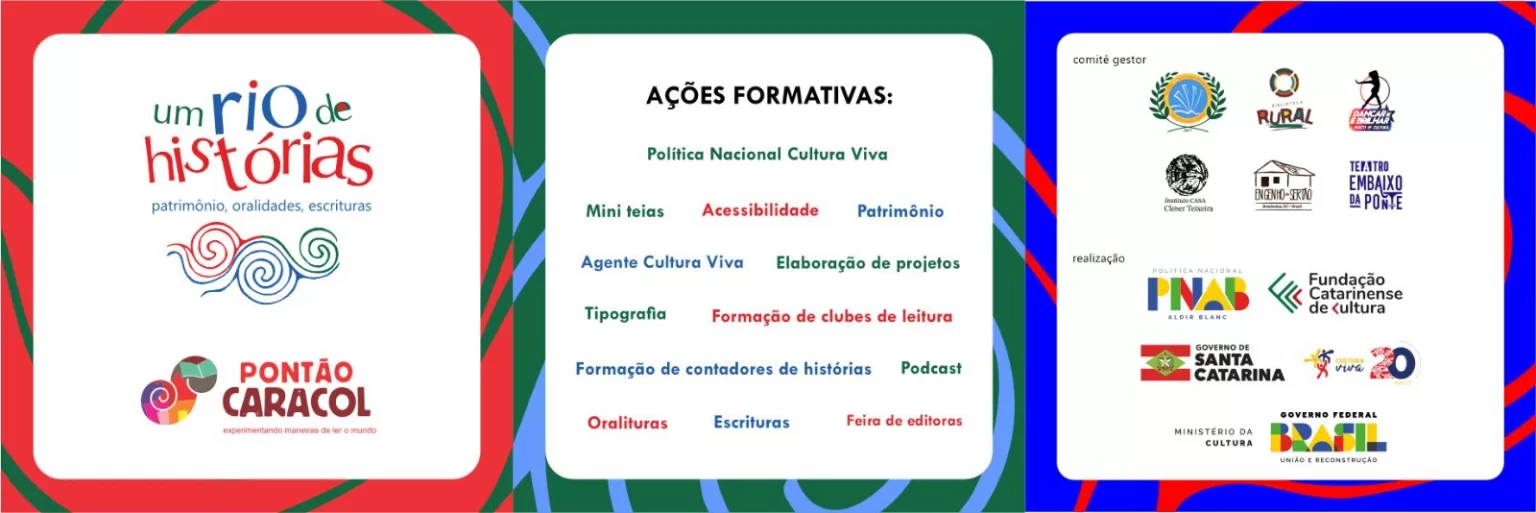Um Rio de histórias é um projeto de Pontão de Cultura Caracol que visa articular e integrar os pontos de cultura da mesorregião do Vale do rio Itajaí açu. Realizações de mini teias, contratação de agentes cultura viva, gravação de podcasts e formações em acessibilidade, PNCV, e PNLLLB’s. O Pontão Caracol é um pontão temático de livro e leitura e mantém o Ponto de Leitura Biblioteca Rural em Rodeio, SC. As ações do projeto Um rio de histórias contemplam também formações voltadas para o seguimento do livro, mercado editorial e formação de contadores de histórias.